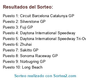 Lista de participantes: Daytona International Speedway Tri-Oval, Circuit Barcelona Catalunya GP, Nürbugring GP, Daytona International Speedway, Fuji GP, Sakitto GP, Zhuhai, Long Beach, Silverstone GP, Sonoma Raceway GP.
