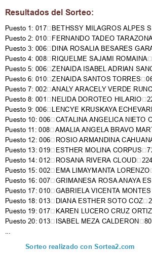 Resultados del sorteo: