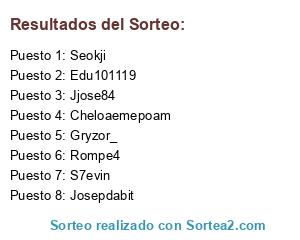 Lista de participantes: Rompe4, Edu101119, Josepdabit, Gryzor_, Jjose84, Seokji, S7evin, Cheloaemepoam.
