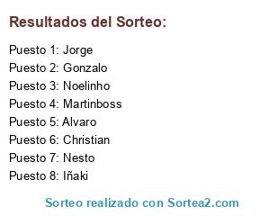 Lista de participantes: Alvaro, Jorge, Iñaki, Christian, Gonzalo, Noelinho, Nesto, Martinboss.