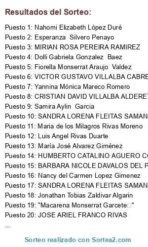 Resultados del sorteo: