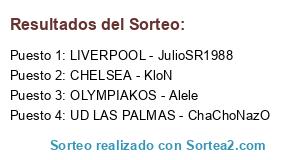 Lista de participantes: LIVERPOOL - JulioSR1988, CHELSEA - KloN, UD LAS PALMAS - ChaChoNazO, OLYMPIAKOS - Alele.
