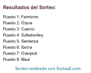 Lista de participantes: Overpick, Ferminnn, Sulledonkey, Ozora, Iborra, Sentenza, Cuervo, Maxi.