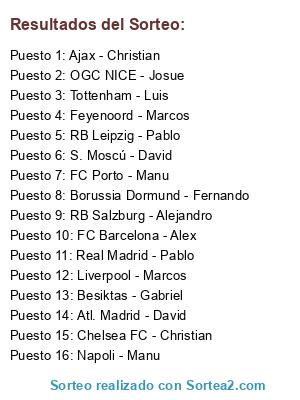 Lista de participantes: R. Madrid, Villarreal, Athletic, Valencia, Manchester United, Arsenal, Tottenham, City, Milán, Napoli, Inter, Juventus, Marsella, Werder Bremen, Lyon, B. Dortmund.