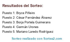 Lista de participantes: Mariano Laredo Rodríguez, Bryce Piñeiro, Borja Portela Guimerans, Germán Urones, César Fernández Álvarez, Adolfo Freire Fernández, Alexander San Juan Salamanca, Francisco Martín Conde.