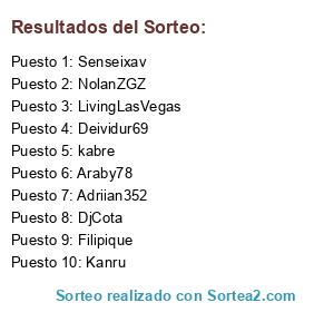 Lista de participantes: NolanZGZ, Senseixav, Adriian352, Kanru, LivingLasVegas, DjCota, Araby78, Deividur69, kabre, Filipique.