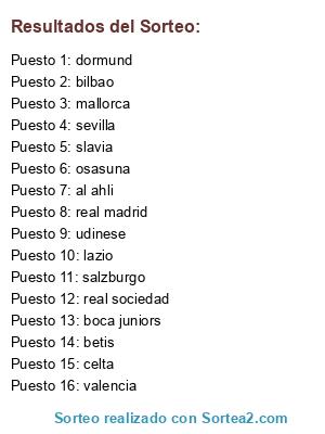 Resultados del sorteo: