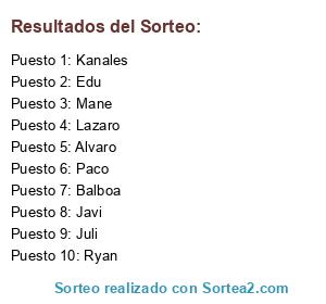 Lista de participantes: Javi, Lazaro, Juli, Edu, Kanales, Paco, Alvaro, Balboa, Mane, Ryan.