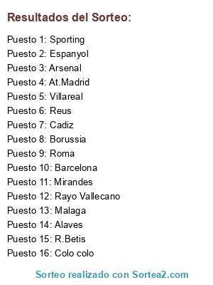 Lista de participantes: R.Betis, Alaves, Rayo Vallecano, Cadiz, Espanyol, Reus, Villareal, Roma, Sporting, Mirandes, Barcelona, Arsenal, Borussia, At.Madrid, Colo colo, Malaga.