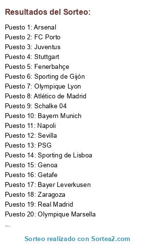 Resultados del sorteo: