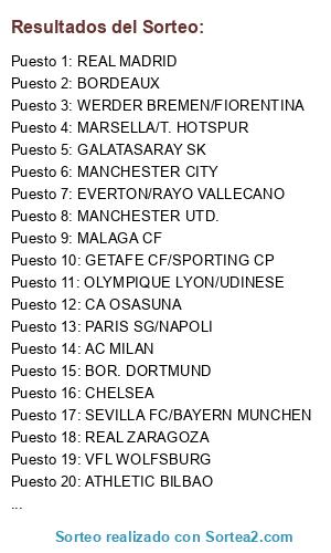 Resultados del sorteo: