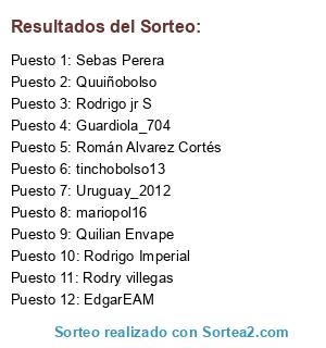 Lista de participantes: PucheGol, fernandez tito, Tito bolso, Ray de la vega, Tommaso Wilson Di Vito, nico del rio18, Nico Mendezz, uli santander, roberto gelista, Andre1438, JOACO ZZ, valdinin.