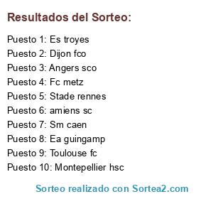 Lista de participantes: amiens sc, Angers sco, Dijon fco, Ea guingamp, Es troyes, Fc metz, Fc nantes, Los lille, Montepellier hsc, Sm caen, Stade rennes, Toulouse fc.