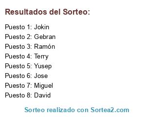 Lista de participantes: Miguel, Terry, Jose, Gebran, David, Ramón, Yusep, Jokin.