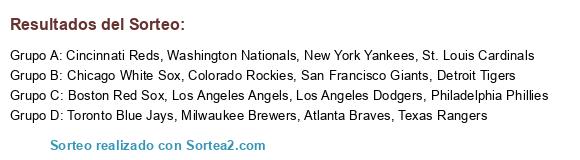 Lista de participantes: Atlanta Braves, Boston Red Sox, Chicago White Sox, Cincinnati Reds, Colorado Rockies, Detroit Tigers, Los Angeles Angels, Los Angeles Dodgers, Milwaukee Brewers, New York Yankees, Philadelphia Phillies, San Francisco Giants, St. Louis Cardinals, Texas Rangers, Toronto Blue Jays, Washington Nationals.