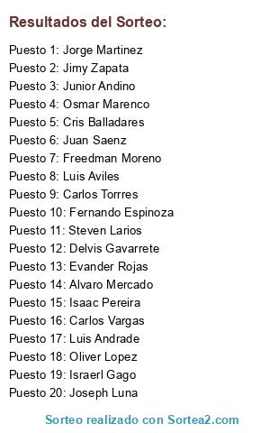 Lista de participantes: Alvaro Mercado, Luis Aviles, Isaac Pereira, Oliver Lopez, Osmar Marenco, Joseph Luna, Luis Andrade, Juan Saenz, Evander Rojas, Delvis Gavarrete, Freedman Moreno, Jorge Martinez, Jimy Zapata, Israerl Gago, Junior Andino, Cris Balladares, Steven Larios, Carlos Vargas, Fernando Espinoza, Carlos Torrres.