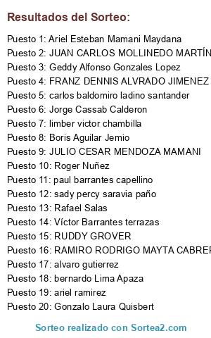 Resultados del sorteo:
