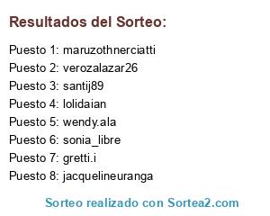 Lista de participantes: wendy.ala , verozalazar26 , sonia_libre , santij89 , maruzothnerciatti , lolidaian , jacquelineuranga , gretti.i.