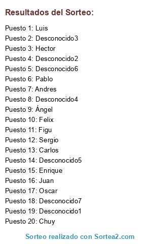 Lista de participantes: Carlos, Oscar, Felix, Pablo, Sergio, Enrique, Figu, Hector, Ángel, Andres, Juan, Chuy, Luis, Desconocido1, Desconocido2, Desconocido3, Desconocido4, Desconocido5, Desconocido6, Desconocido7.