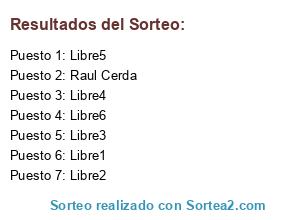 Lista de participantes: Raul Cerda, Libre1, Libre2, Libre3, Libre4, Libre5, Libre6.