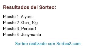 Lista de participantes: Alyarc, Geri_10g, Pirrooo1, Jonymanta.