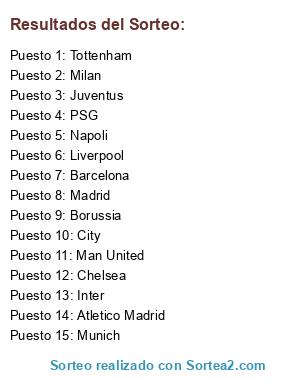 Resultados del sorteo: