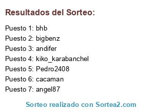 Lista de participantes: bigbenz, kiko_karabanchel, Pedro2408, andifer, cacaman, angel87, bhb.