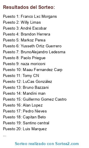 Lista de participantes: Bruno Bazzani, Luis Marquez, Pedro Nieves, Paolo Priegue, Max De Leon, Miguel Gonzalez, Yusseth Ortiz Guerrero, Willy Limas, Rodrigo Retamar, Abraham Mejia, Maau Fernandez Carp, Alan Lopez, André Escobar, Guillermo Gomez Castro, Andres Valverde, Capitan Beto, BrunoAlejandro Ledesma, Franco Lxc Morgans, LuCas González, Adrian Piriz, Brandon Herrera, Cristian Sanchez, Cesar Goyaz, Tomy CN, Alexander Damian Caballero, naza moriconi, Alexis Erives, Mandini man, Markoz Perea, Santino central.