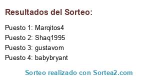 Lista de participantes: Marqitos4, babybryant, Shaq1995, gustavom.