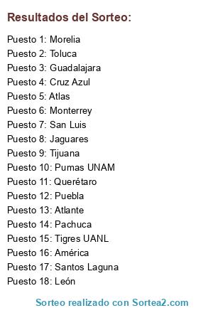 Lista de participantes: América, Atlante, Atlas, Guadalajara, Cruz Azul, Jaguares, León, Morelia, Monterrey, Pachuca, Puebla, Querétaro, San Luis, Santos Laguna, Tijuana, Toluca, Tigres UANL, Pumas UNAM.