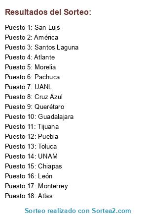 Sorteo de equipos Liga MX