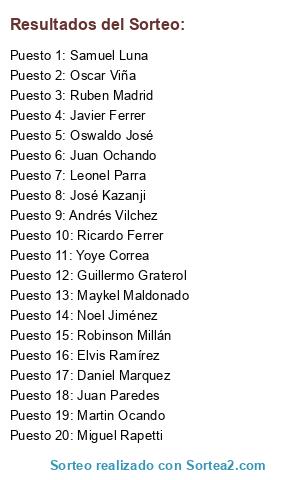 Resultados del sorteo: