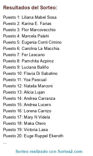 Lista de participantes: Cin Antista (3), Belu Lionetti (1), Flor Marcovecchio (4), Agus Lebron (10), Gisela Filoni (2), María José Alvarez (1), Maria Guiroy (2), Marcela Palahi (3), Karina E. Farias (47), Lore La Macchia (5), Victoria Lasa (5), Sabrina Gutiérrez Chacón (2), Silvya Ayala (4), Roxana Peyrano (2), Natalia Marconi (2), Pamchita Azpiroz (15), Fer Lescano (10), Alicia Lujan (3), Ale Illescas (2), Carolina La Macchia (4), Majo Perez (1), Belen Canevello (8), Flavia Di Sabatino (3), Yoa Pascual (9), Daiana Brun (2), Maka Otero (1), Luciana Baliño (3), Eugenia Conti Cimino (1), Lorena Drimoni (1), Za-jazz Karina (1), Liliana Mabel Sosa (1), Celii Alvarez (1), Ivana Peralta (1), Andrea Laffargue (2), Lorena Carrizo (3), Rocio Mang (2), Andrea Lucero (3), Mary N Videla (2), Lucía García (1), Andrea Carranza (1), María García (2), Euge Ruppel Ekeroth (1).