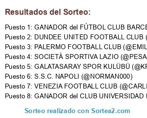 - GANADOR del FÚTBOL CLUB BARCELONA (@MAKAROOV69) VS AEK (@JUANR33) - DUNDEE UNITED FOOTBALL CLUB (@BETIS_87)