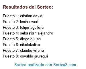 Lista de participantes: lenin ewert, cristian david, osvaldo jauregui, claudio villena, felipe aguilera, nikolokolino, sebastian alejandro, diego o juan.