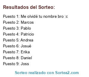 Lista de participantes: Erika, Pablo, Andrea, Josué, Marcos, Kevin, Patricio, Joss, Daniel, Me olvidé tu nombre bro :c.