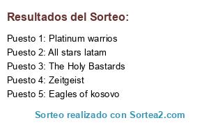 Lista de participantes: Platinum warrios, All stars latam, Eagles of kosovo, The Holy Bastards, Zeitgeist.