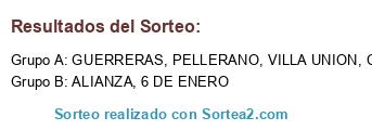 Lista de participantes: ALIANZA, 6 DE ENERO, COMBATE, GUERRERAS, VILLA UNION, PELLERANO.