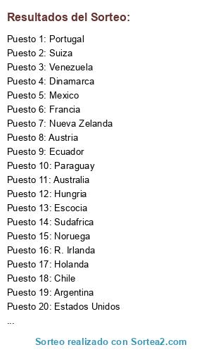 Resultados del sorteo: