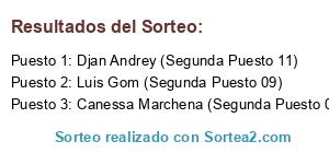 Lista de participantes: Canessa Marchena (Segunda Puesto 05), Luis Gom (Segunda Puesto 09), Djan Andrey (Segunda Puesto 11).