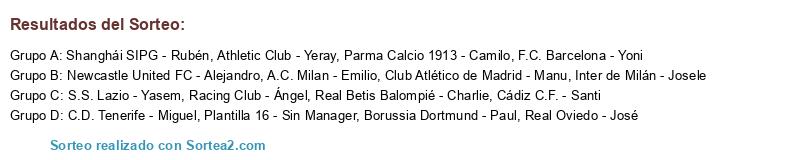Sorteo de asignación de Grupos Previa Champions League