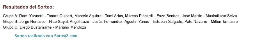 Lista de participantes: Angel Lazo - Jesús Fernandez, Marcos Piccardi - Enzo Benítez, Pato Navarro - Milton Tamasso, Rami Yannetti - Tomas Guibert, José Martín - Maximiliano Selva, Marcelo Aguirre - Tomi Arias, Jorge Nonasco - Nico Sayal, Agustin Yanos - Esteban Salgado, Diego Bustamante - Mariano Mendoza.