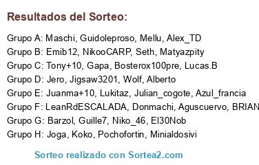 Lista de participantes: Juanma+10, NikooCARP, LeanRdESCALADA, Guidoleproso, Pochofortin, Jigsaw3201, Wolf, Seth, Julian_cogote, Alex_TD, Bosterox100pre, Minialdosivi, Donmachi, Azul_francia, Koko, Matyazpity, Mellu, Tony+10, Lukitaz, Lucas.B, BRIANCITU, Jero, Guille7, Barzol, Joga, Maschi, Aguscuervo, Emib12, Niko_46, Alberto, Gapa, El30Nob.
