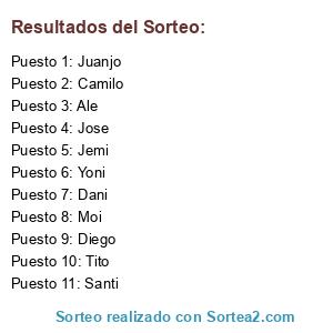 Lista de participantes: Ale, Camilo, Dani, Diego, Jemi, Jose, Juanjo, Moi, Santi, Tito, Yoni.