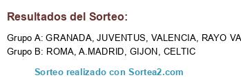 Lista de participantes: RAYO VALLECANO, GRANADA, JUVENTUS, CELTIC, VALENCIA, GIJON, ROMA, A.MADRID.