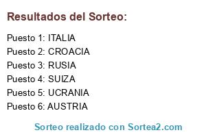 Lista de participantes: ITALIA, RUSIA, SUIZA, AUSTRIA, CROACIA, UCRANIA.