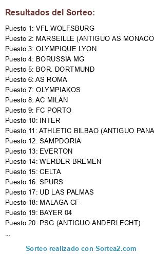 Lista de participantes: AJAX, AS ROMA, BAYER 04, BORDEAUX, CELTIC, EVERTON, ATLETICO MADRID (ANTIGUO FC BARCELONA), LIVERPOOL, MALAGA CF, REAL BETIS (ANTIGUO NAPOLI), OLYMPIAKOS, OLYMPIQUE LYON, MANCHESTER CITY (ANTIGUO SEVILLA FC), UD LAS PALMAS, VFL WOLFSBURG, WERDER BREMEN, AC MILAN, PSG (ANTIGUO ANDERLECHT), ARSENAL, MARSEILLE (ANTIGUO AS MONACO), BOR. DORTMUND, BORUSSIA MG, CELTA, FC BAYERN, FC PORTO, INTER, MANCHESTER UTD (ANTIGUO LEVANTE UD), ATHLETIC BILBAO (ANTIGUO PANATHINAIKOS), REAL MADRID CF, SAMPDORIA, SPURS, VILLARREAL CF.