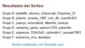 Lista de participantes: wolverine_rms, noir_46, erreala_1987, oskarmp, D3rkl3oN, carloxdim1, jaime, saimon1393, elcorso, danieliyo, juampi, palomillo, varondandi, albertito, superuce, Papones_23, evanya, youssef1981, sabet84, Juanillo302, julianhr, chiscoviak.