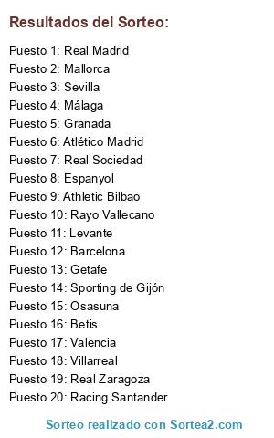 Resultados del sorteo: