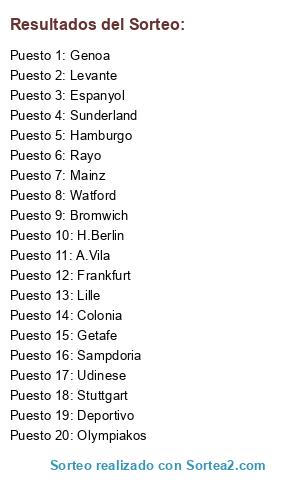 Lista de participantes: Real madrid: LuisPesEdition, Barcelona: rodrii271, Atletico Madrid: Carlos77, Bayer munich: cortessi, Chelsee: ROBERT17, Manchester United: jorgec30, Manchester City: TAMAYIN1217, Juventus: Angeldamianc, Psg: ronald1, Arsenal: IvanCasa.
